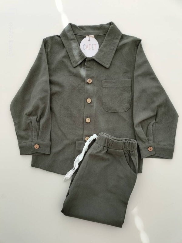 Katoenen linnen pyjama met lange mouwen