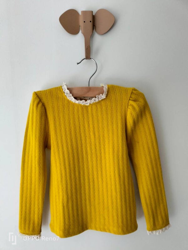 Trui met kant - mosterd